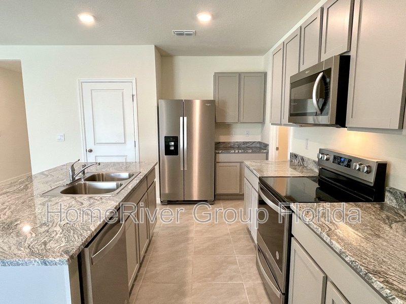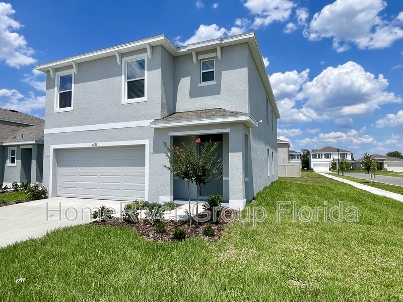 Step into this brand-new two-story home featuring 5 bedrooms, 3 bathrooms, and a 2-car garage. With 2,447 square feet of living space, this spacious residence is situated on a corner lot and boasts an open floor plan. The large kitchen is equipped with quartz countertops, an island with barstool seating, stainless steel appliances, a pantry, and ample cabinet space. The generously sized living and dining areas include sliding glass doors that lead to the back patio. A guest bedroom and a full bathroom are conveniently located on the first floor. On the second floor, you'll find the primary bedroom with an ensuite bathroom featuring dual sinks and a walk-in shower. Additionally, the second floor includes a spacious loft, a laundry room, a bathroom, and three generously sized bedrooms. Residents can enjoy access to amenities including three resort-style pools, Tot Lot Parks, an open-air clubhouse with an outdoor kitchen, and walking paths. Schedule your tour today!