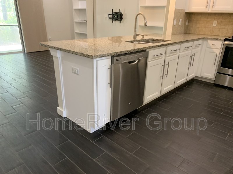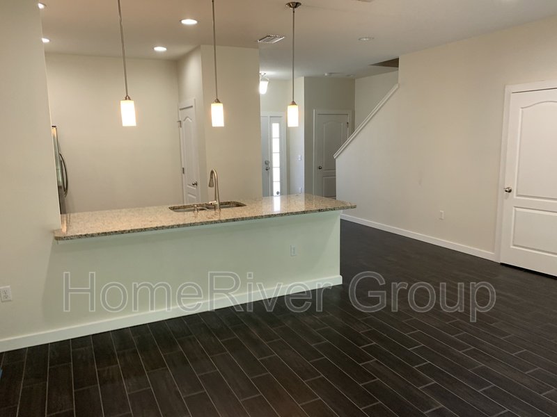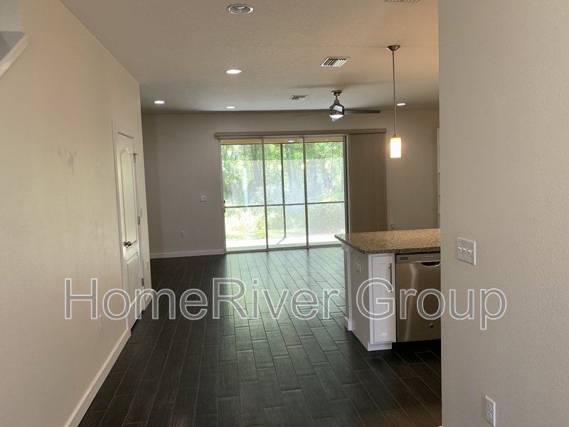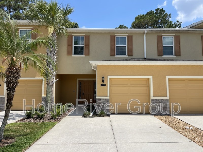 Coming Soon! This stunning 3-bedroom, 3-bathroom townhome offers elegant upgrades throughout, including new wood-look ceramic tile flooring in every room. The gourmet kitchen features 42" staggered upper wood cabinets, granite counters with a breakfast bar, tile backsplash, stainless steel appliances, pendant lighting, and a pantry all opening to a bright family room with beautiful wooded views. Step outside to a private, screened-in covered lanai complete with a double ceiling fan for year-round comfort. The spacious master suite is filled with natural light, while the luxurious en-suite bathroom boasts dual sinks, a glass walk-in shower with a rain shower head, and a linen closet. The upstairs also includes a convenient laundry area with washer, dryer, and shelving, plus two additional bedrooms that share a full bath. Located in the desirable Hidden River community, residents enjoy access to a pool, sauna, and fitness center.