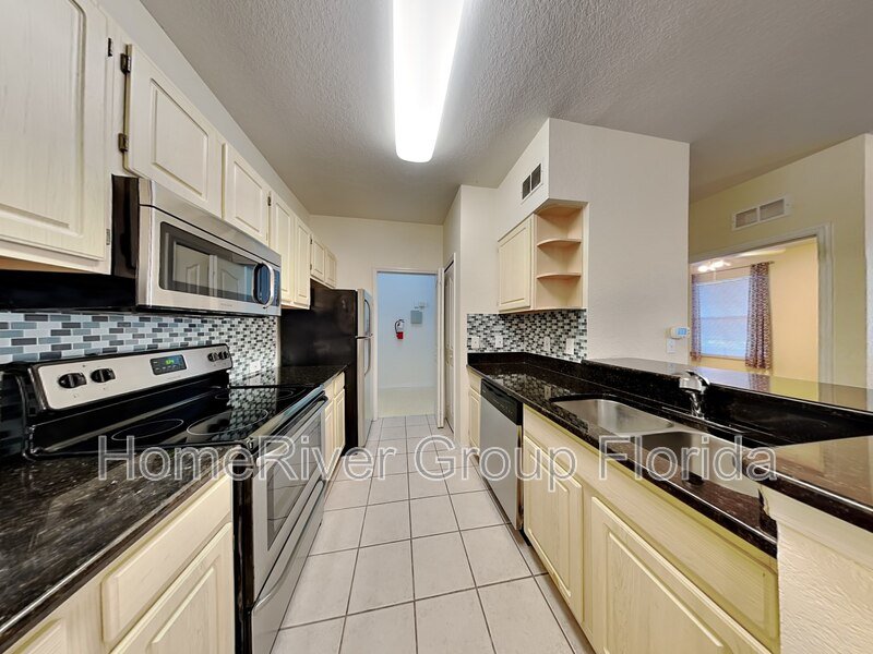 Must see this beautiful, 1 bed/1 bath, ground floor condo, in the gated community of Bella Terra. This unit has laminate flooring in the bedroom and main living areas. The kitchen has granite countertops, stainless steel appliances, volume ceilings, built-in shelving, ceiling fans, a walk-in closet, and a screened balcony with a storage closet. Washer and Dryer are included, as is garbage collection. This community has a resort-style, sparking pool and hot tub, tennis courts, a state-of-the-art fitness center as well as a playground and clubhouse. Make your appointment today!