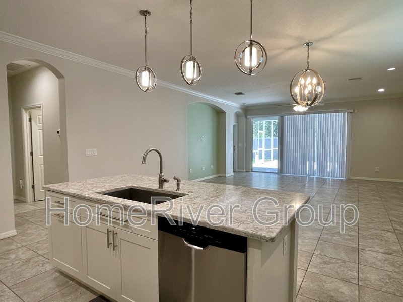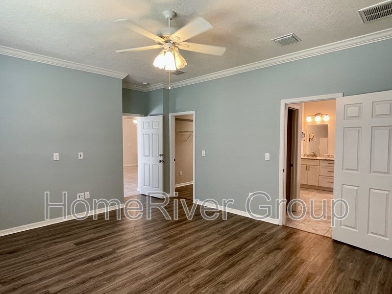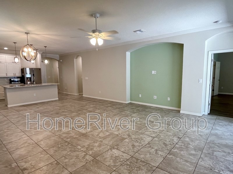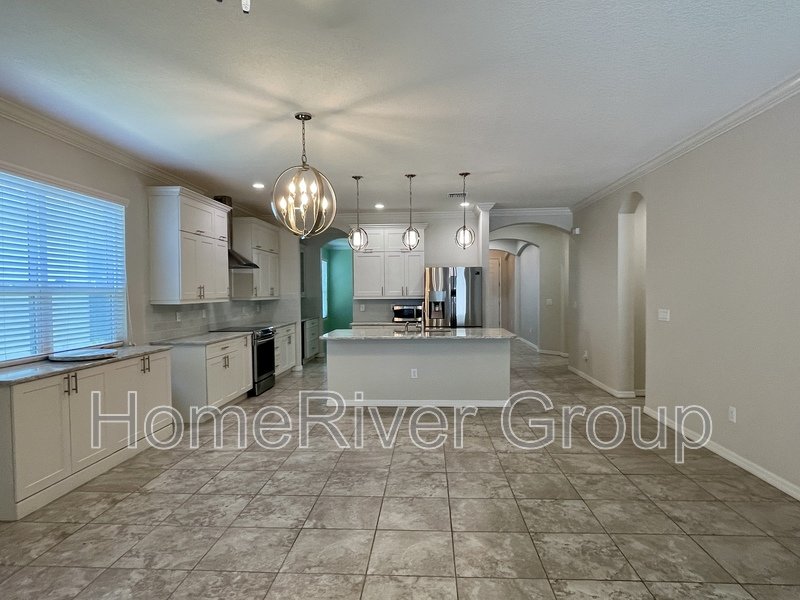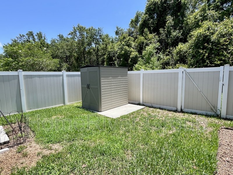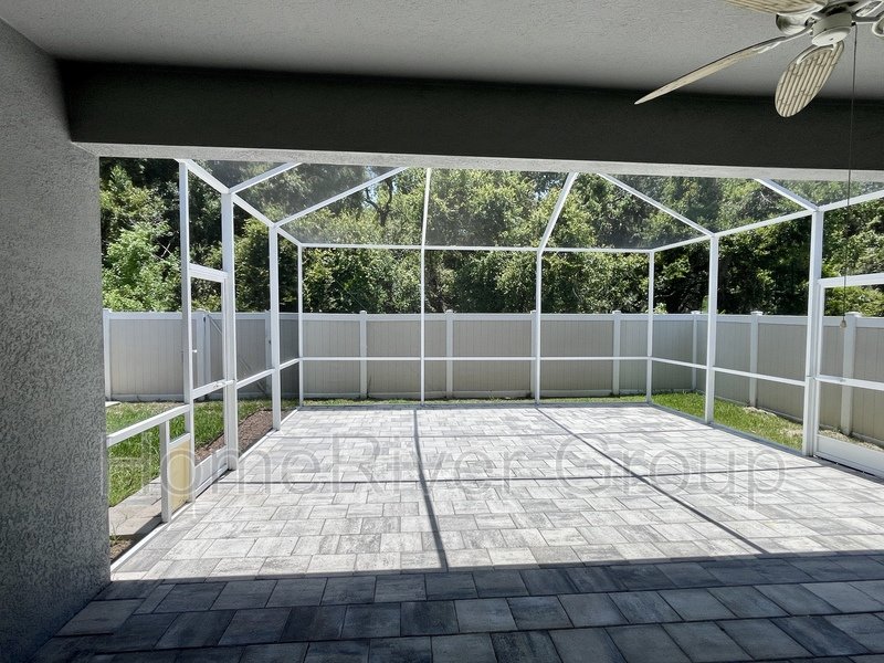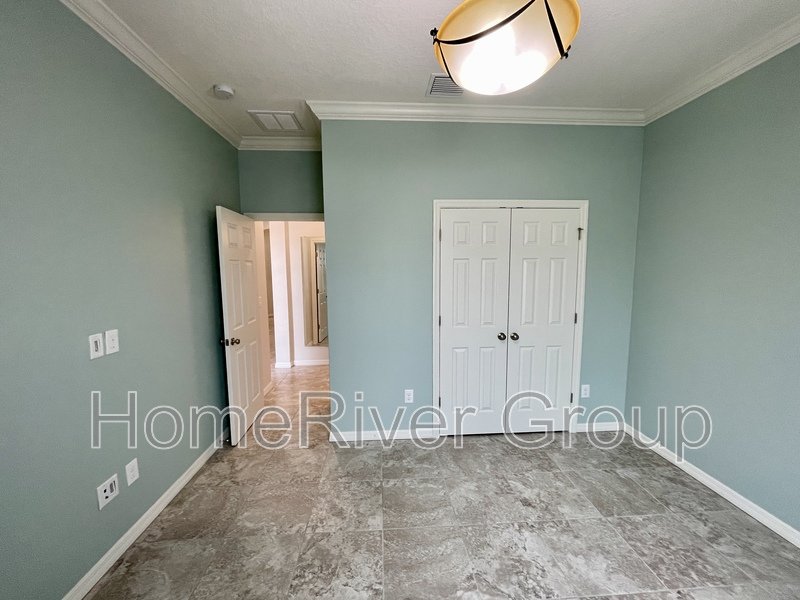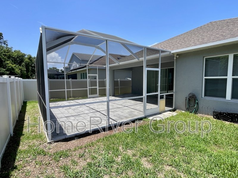 Coming Soon. Available June 9th. Stunning 4-bedroom, 3-bathroom home for rent, available now. This home is filled with attention to detail, featuring upgraded tile, crown molding, and high ceilings with LED lighting. The split bedroom floorplan includes a first bedroom and a full bathroom off the foyer. A versatile Flex Room can be used as a formal dining room, office, or den. The kitchen offers a butlers pantry with custom glass-inlaid cabinetry, quartz countertops, and a beverage fridge. It also boasts solid wood soft-close cabinets, pull-out shelving, upgraded appliances, a hood vent, pendant lights, and an island with barstool seating overlooking the living room and dining area. Sliding glass doors off the living room lead to a large screened-in patio. To the left of the kitchen, a hallway leads to a laundry room, two bedrooms, and a full bath with upgraded cabinets and quartz countertops. The primary suite at the rear of the house features luxury vinyl plank flooring, a large walk-in closet, and an ensuite bathroom with dual sinks, a garden tub, and a separate shower. The patio showcases beautiful pavers, a large covered lanai, and a screened area. The fully fenced backyard includes a shed for extra storage. The garage is equipped with cabinets, heavy-duty shelving, and a convenient side exit door. LAWN SERVICE IS INCLUDED. This home is conveniently located just minutes from I-75 and the Crosstown Expressway, and close to schools, parks, restaurants, and shopping. Make this home yours today!